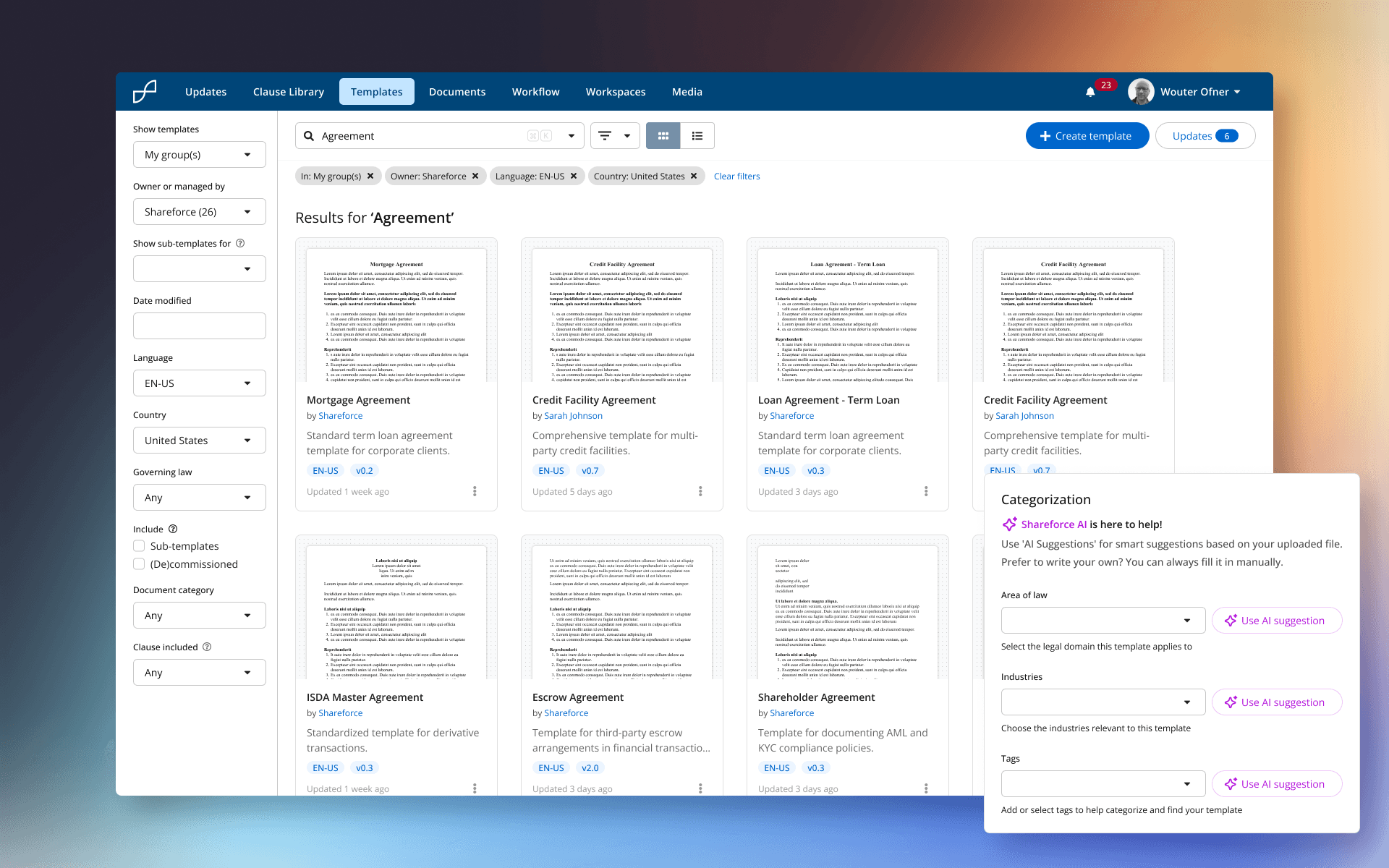 How I designed the template management and creation flows for a legal SaaS product, which enhanced efficiency, compliance, and collaboration among legal and contract teams in banking & insurance.