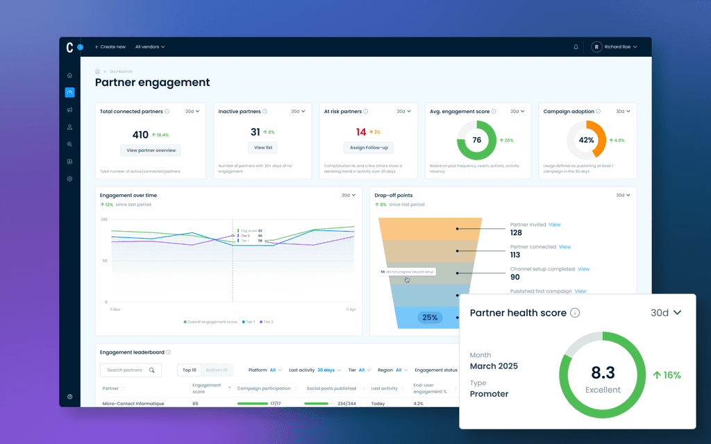 How I simplified complex engagement metrics into real-time decision-making with a dashboard highlighting KPIs, engagement trends, and a dynamic leaderboard. This approach enhances vendor-partner relationships by transforming fragmented data into actionable insights.