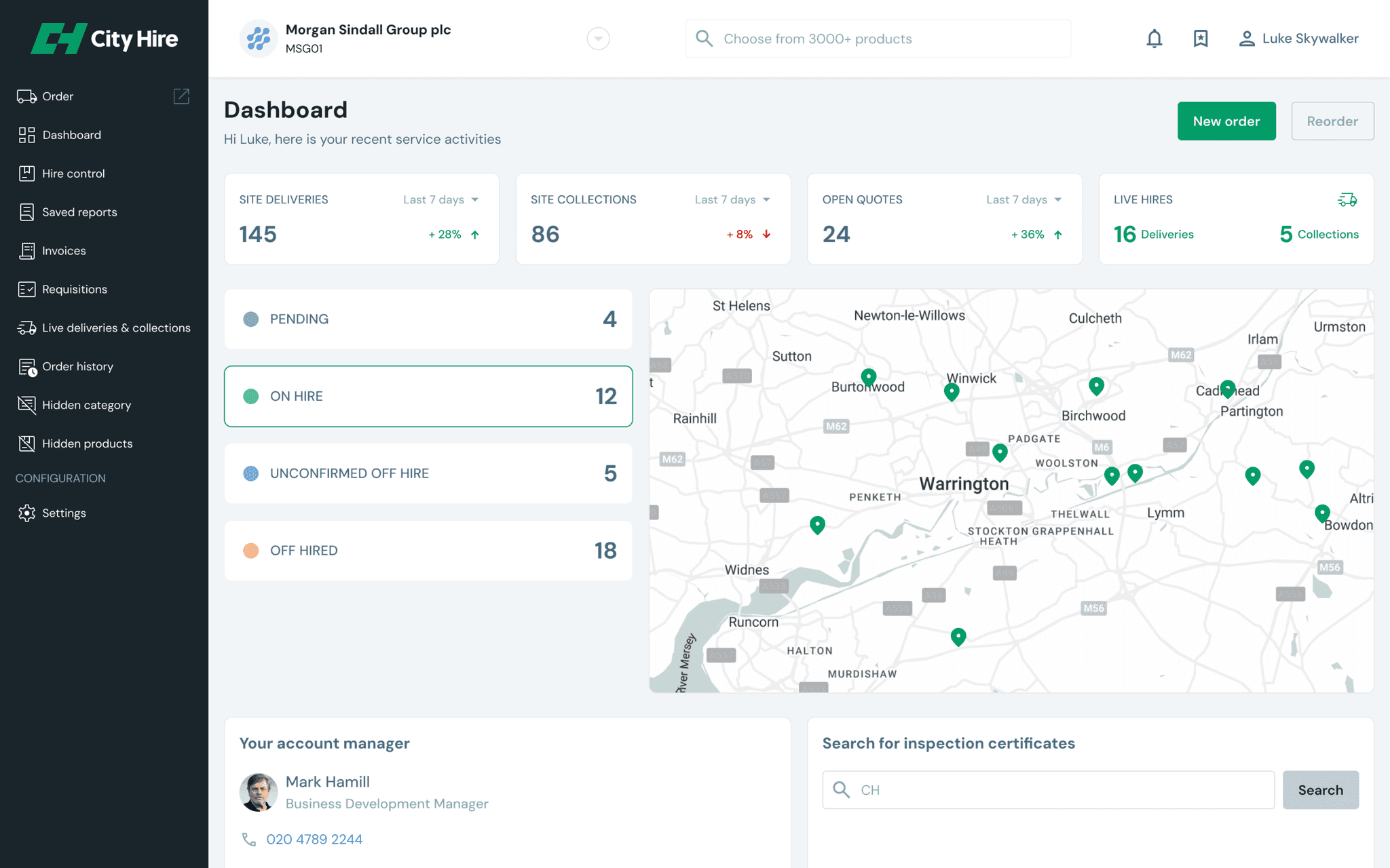 A streamlined dashboard that puts every hire, delivery, and cost insight at the fingertips of City Hire’s customers.
