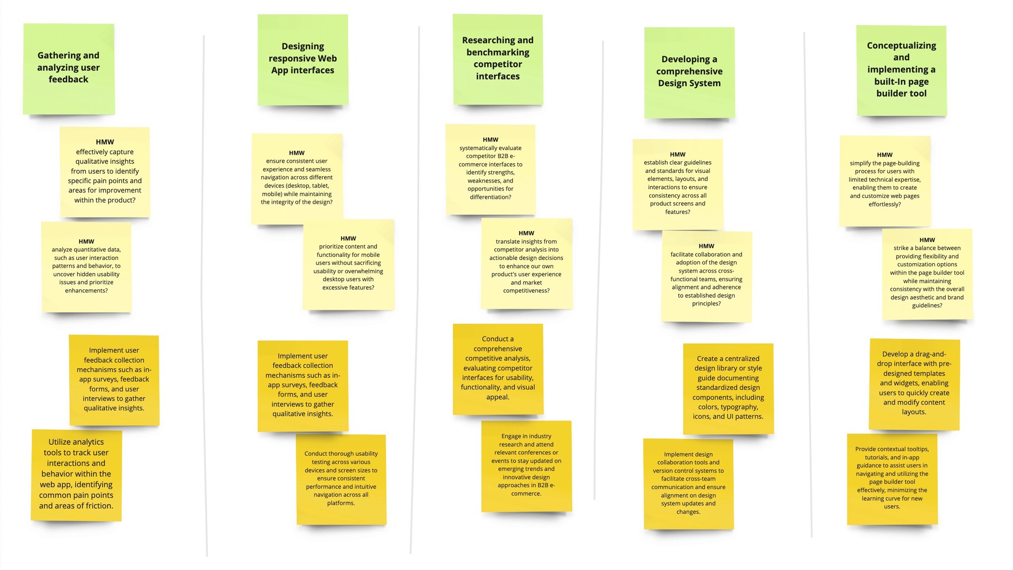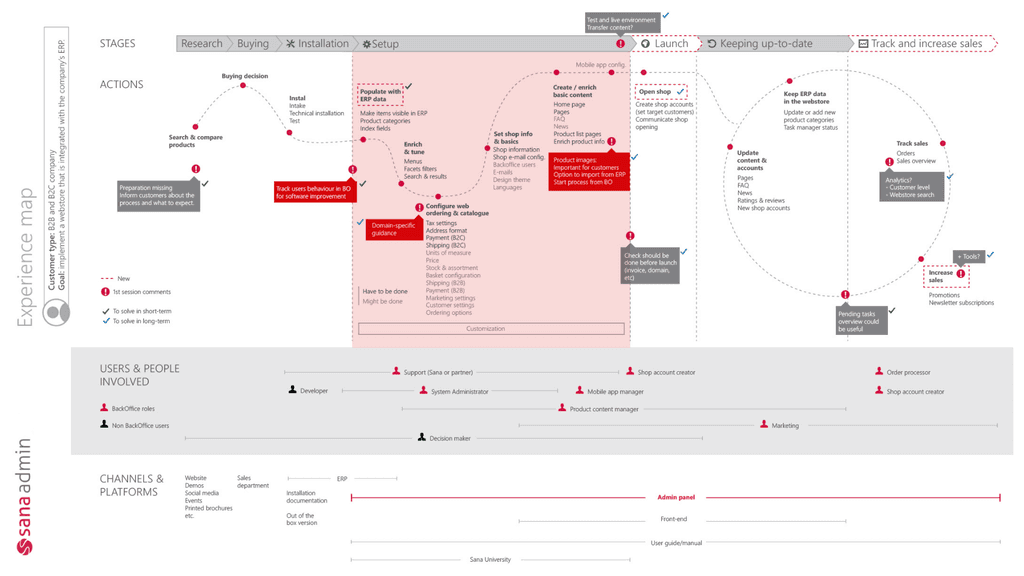Internal and external user feedback, task analysis, and workshop insights gathered
