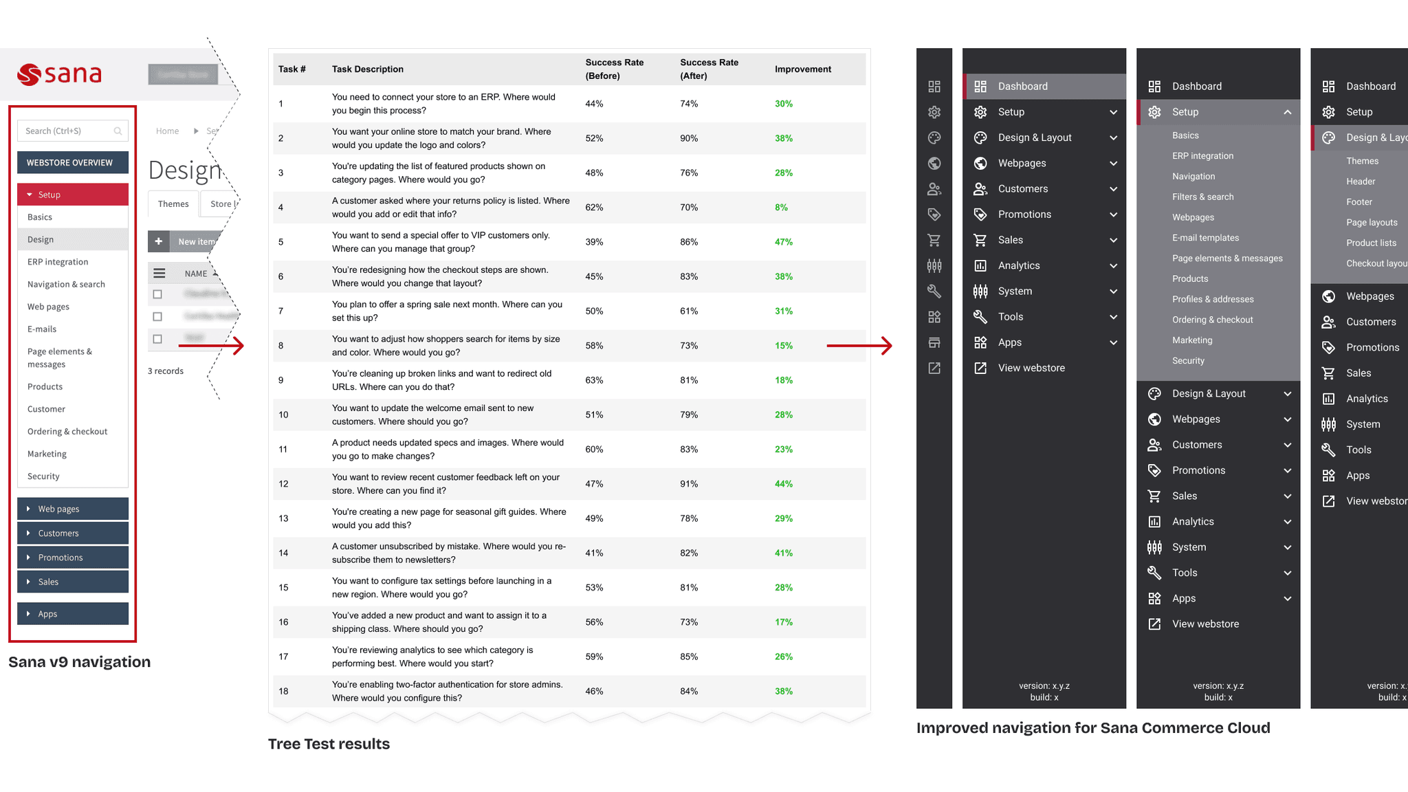 Before and after UI of Sana admin overview