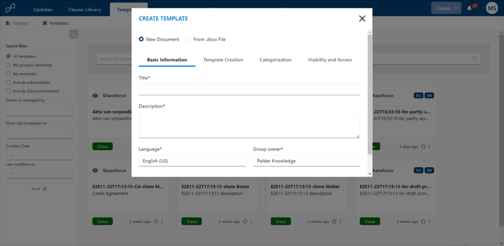Legal and contract teams at banks and insurers rely on Shareforce to draft, store, and maintain hundreds of high-stakes document templates. Yet the current Template Management interface and multi-step creation modal present three critical obstacles:
