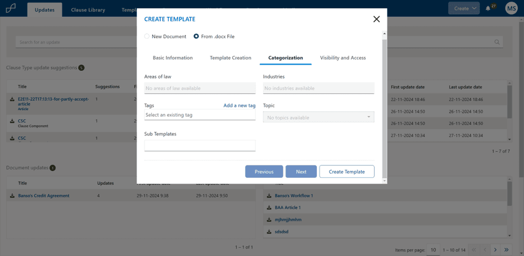 How I designed the template management and creation flows for a legal SaaS product, which enhanced efficiency, compliance, and collaboration among legal and contract teams in banking and insurance.